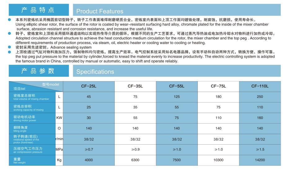 生產型密煉機體積小,結構簡單.易操作.能耗少,使用維修方便等優點.采用臺灣圖紙技術,大陸生產,進口機的品質,國產機的價格。 本公司生產的密煉機,在漏粉密封效果,和溫控方面及機器轉子耐磨度均達到行業水平。